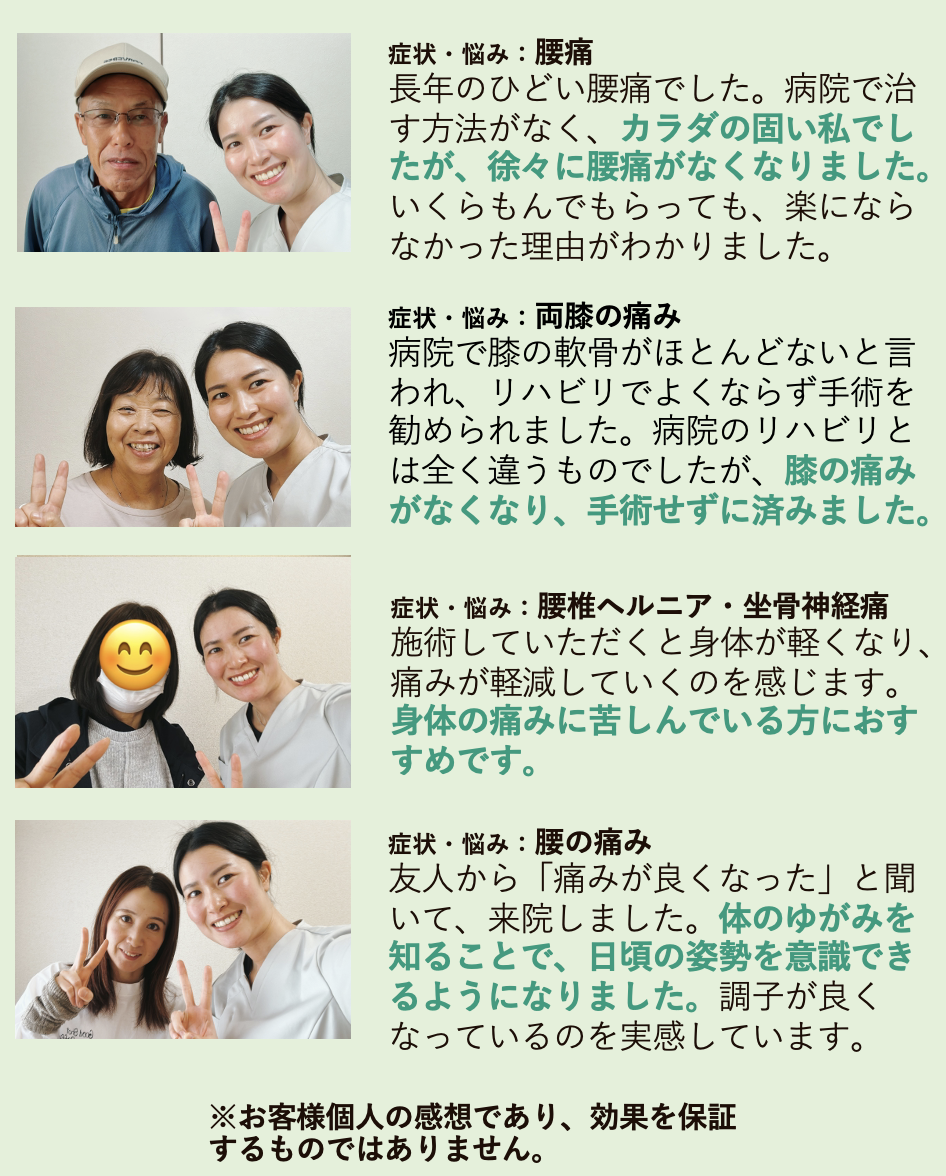 改善率は90%以上で草津市にお住まいのお子様からご年配の方まで大変好評いただけております。